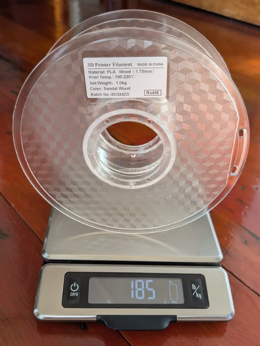 • Advertised filament weight: 1000 g